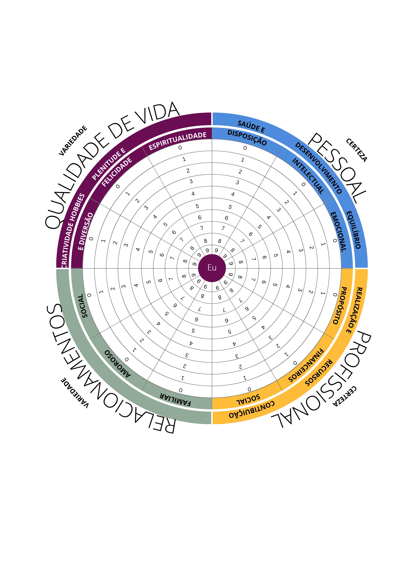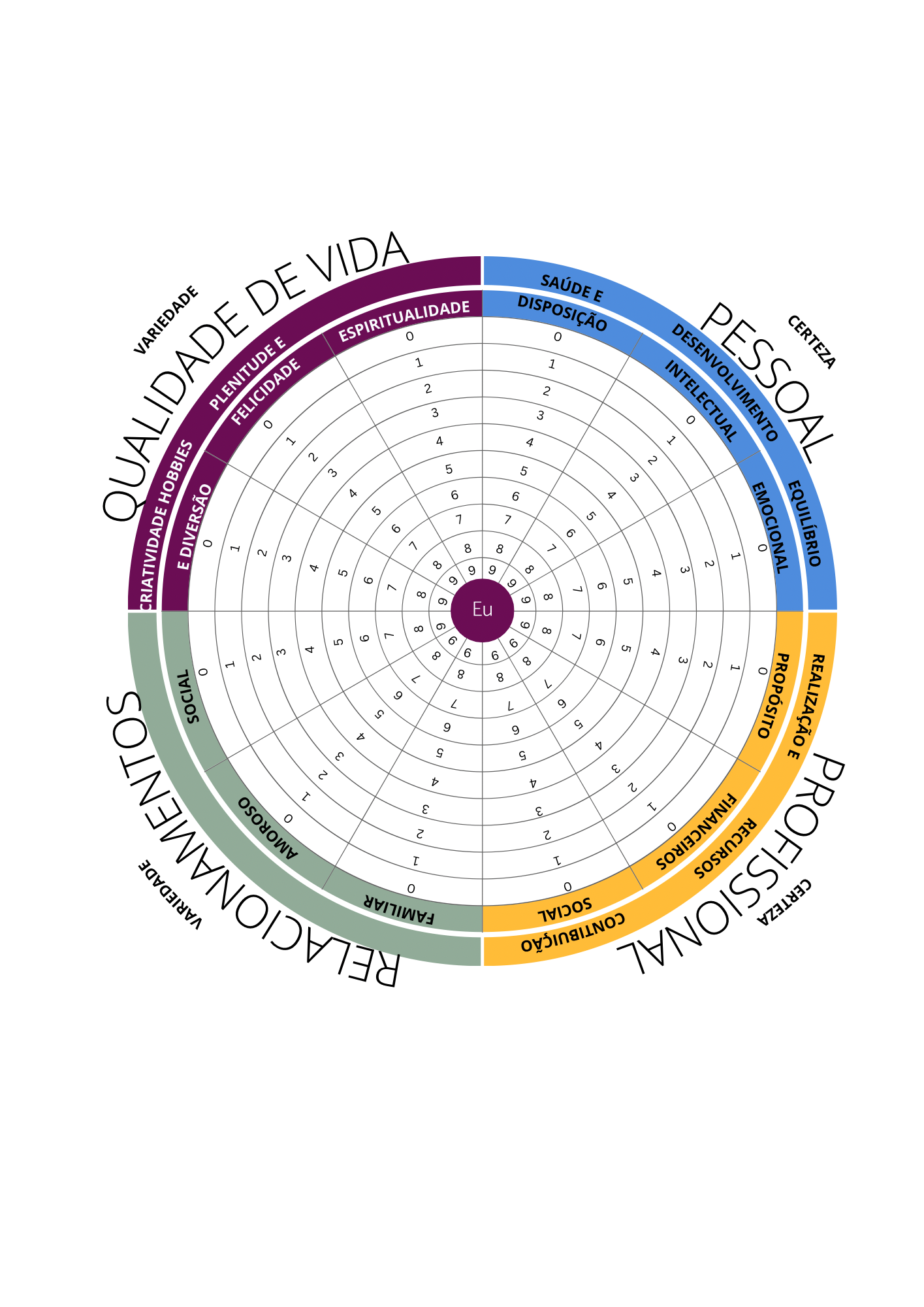 Através da Roda da Vida Pessoal e da Roda da Profissão, você vai enxergar com profundidade: